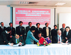 The signing ceremony of the Agreement on Mcom (Master of Commerce Program) between BITCC, Beijing University of Aeronautics and the University of New South Wales Of Australia